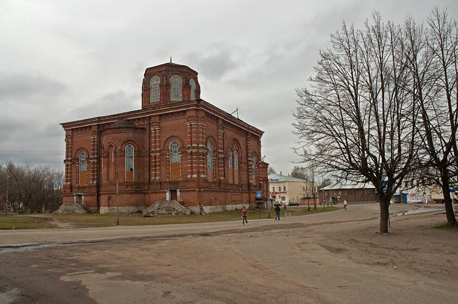 | В 1906 году на центральной площади города Макарьева был возведен новый большой храм, освященный в честь Тихвинской иконы Божией Матери. Однако, местные жители чаще именовали его не Тихвинским, а Александро-Невским – по приделу во имя святого благоверного князя Александра Невского. В 1906 году новый храм получил статус собора города Макарьева, а храм в честь Рождества Христова был обращен в приходскую церковь. С того времени храм на площади стали называть «новым собором», а храм Рождества Христова - «старым». http://makariev.prihod.ru/abouthram