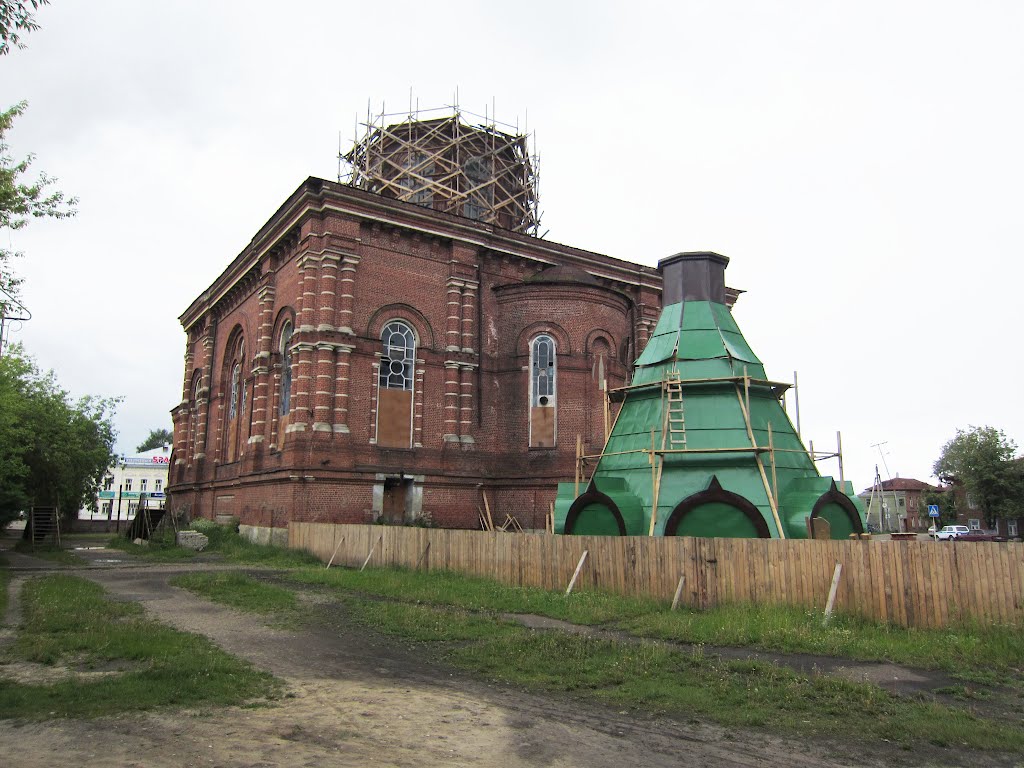 До возобновления Тихвинской церкви дело дошло после того, как город Макарьев стали отстраивать по новому плану, утверждённому в 1802 году императором Александром I. Храм на центральной площади города решили поставить в конце XIX века. Заложен он был в середине 1890-х гг. и строился «всем миром», тщанием прихожан – жителей города всех слоёв и сословий